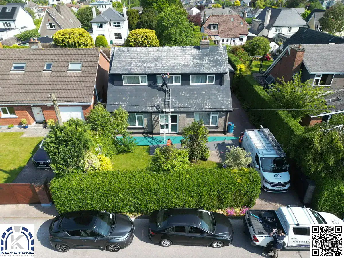 Call 087 706 9266 now to book your professional drone roof inspection with Keystone Roofing Ltd., Cork’s trusted roofing experts since 2003.
